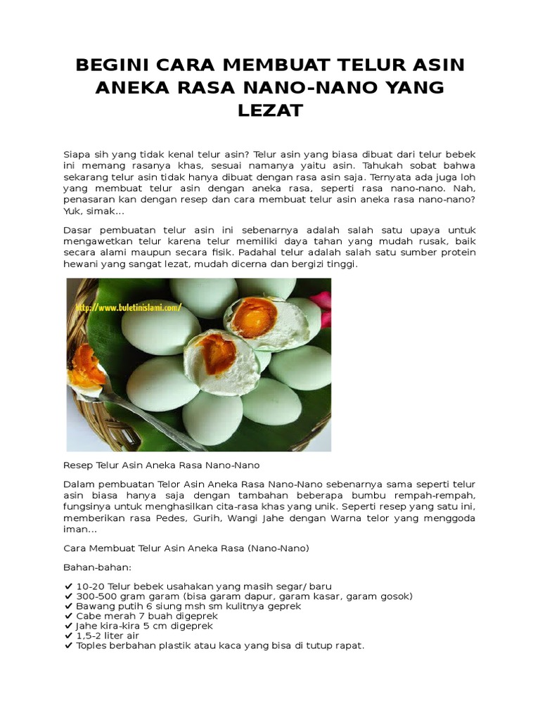 Begini Cara Membuat Telur Asin Aneka Rasa Nano Pdf