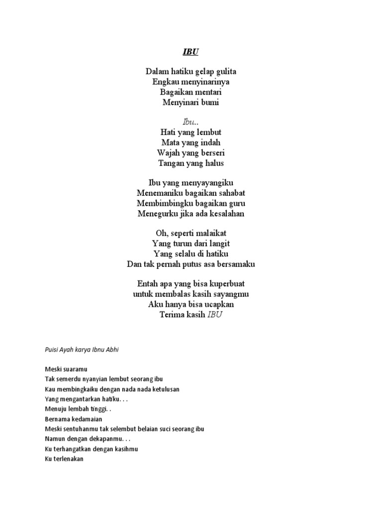 Ini tugas bahasa indonesia ku hope you like it xx IBU Karya. Kau berikan segala jenis pengetahuan. 37 Puisi Guru Singkat Guruku Tercinta Pahlawan Tanpa Tanda Jasa.